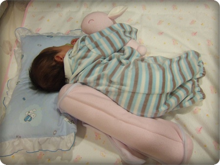 讓小孩的頭比較不會往枕的那邊翻過去。